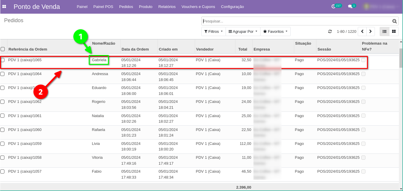 3.1. Identifique o pedido do cliente que você quer enviar a NFCe