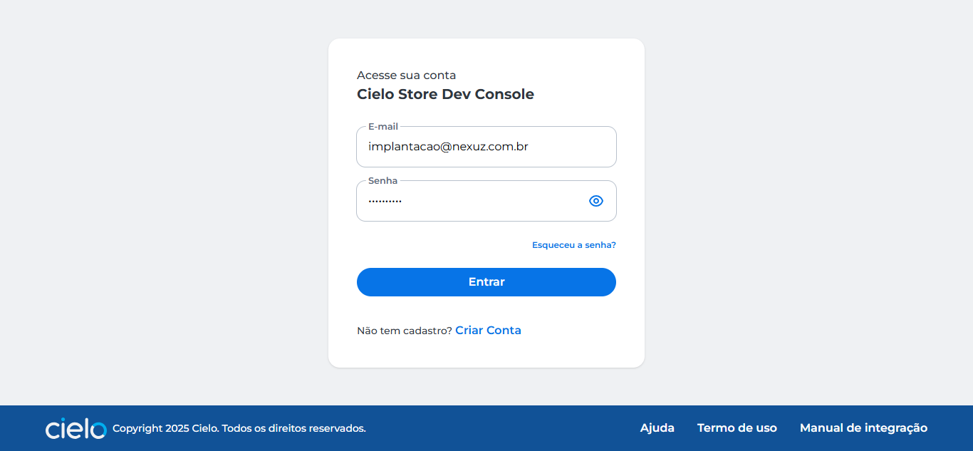 1. Entre no site https://www.cieloliostore.com.br/sign-in e acesse com seu e-mail e senha e depois clique em "Entrar"