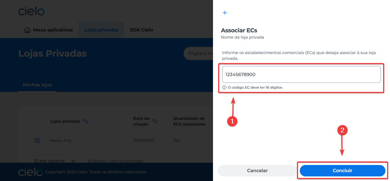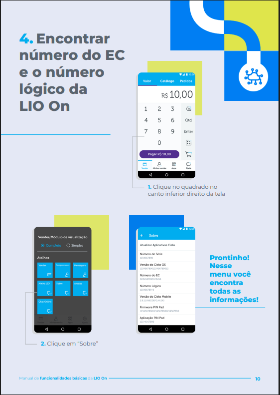 3.1. Digite o código Ec que você pegou com o cliente, este código precisa ter 11 dígitos, se o cliente informar um código menor, significa que ele pegou o código Ec do aplicativo e precisa ser o código Ec da Maquininha, confirma imagem abaixo.  (Manual Cielo Lio: https://desenvolvedores.cielo.com.br/api-portal/sites/default/files/LIO_ON_-_Manual_COMPLETO.pdf)